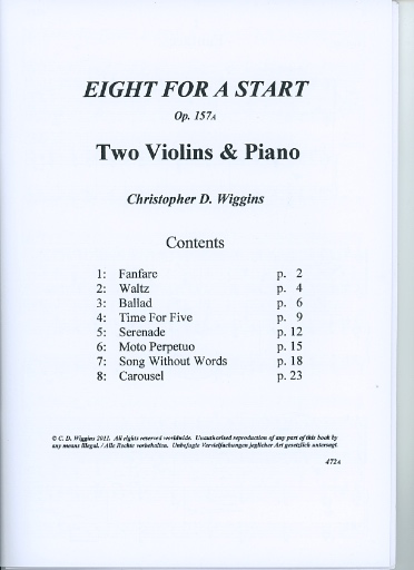 Wiggins, Christopher: Eight for a Start, Op.157A (2 violins & piano)