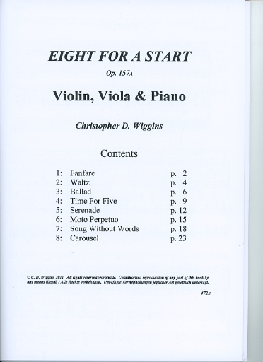 Wiggins, Christopher: Eight for a Start, Op.157A (violin, viola & piano)