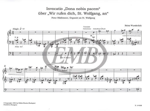 Wunderlich, H.: Invocatio ''Dona Nobis Pacem'' for Violin and Organ (violin, and organ)