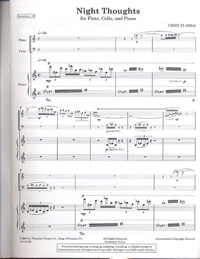 Yi, Chen: Night Thoughts (flute, Cello & piano)