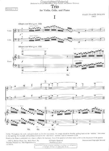 Zwilich, Ellen Taafe: Piano Trio (violin, cello, piano)