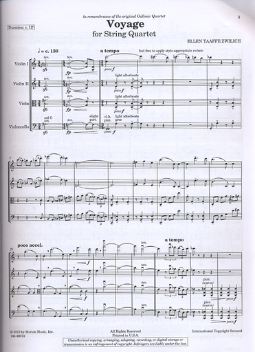 Zwilich, Ellen Taafe: Voyage for String Quartet (score and parts)