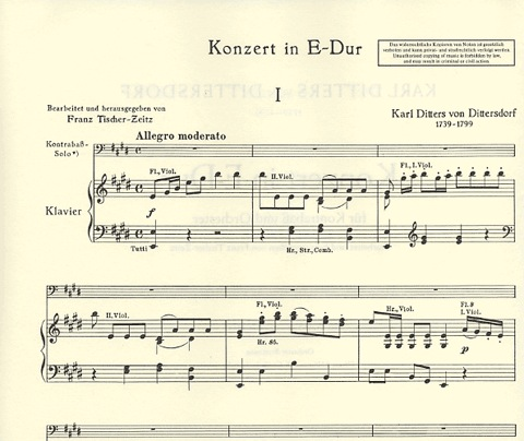 Dittersdorf, K.D. (Tischer-Zeitz): Bass Concerto in E major (bass & piano)