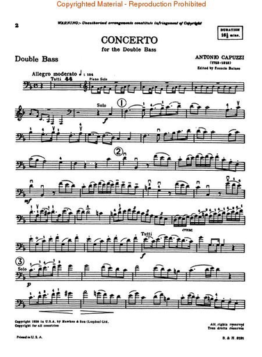 Capuzzi, A. (Baines): Concerto in F (double bass & piano)