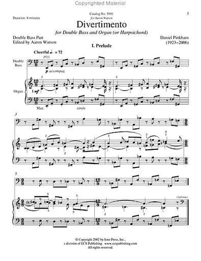 Pinkham, Daniel: Divertimento for Double Bass and Organ
