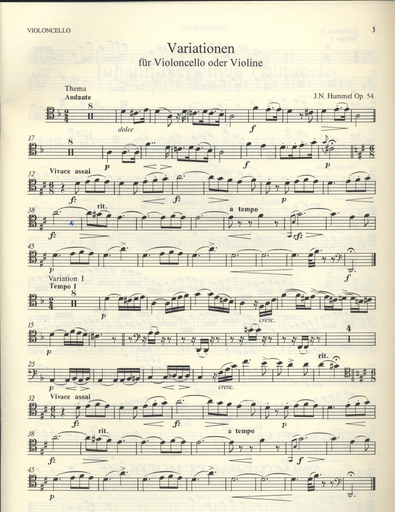 Hummel, J.N.: Variations for Cello or Violin and Piano
