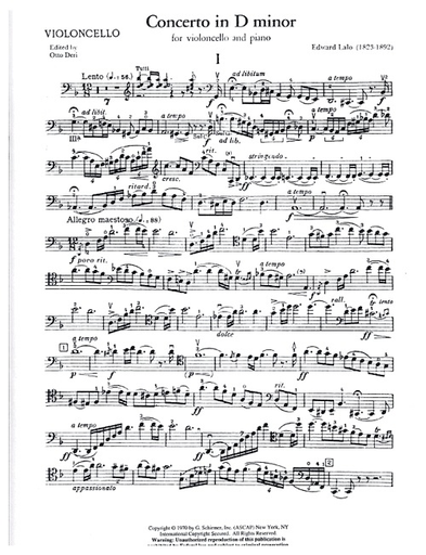 Lalo (Deri): Cello Concerto (cello & piano) SCHIRMER