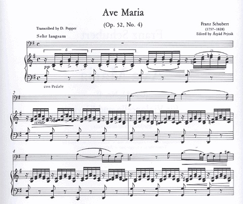 Schubert, Franz (Pejtsik) : Ave Maria Op.52 No.4 (cello & piano) Editio Musica Budapest