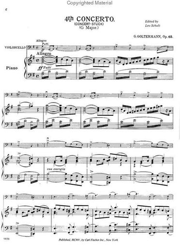 Goltermann, G. (Schultz, Arr): Concerto No.4 Op.65 in G (cello & piano) Carl Fischer
