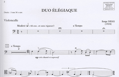 Nigg, Serge: Duo Elegiaque (cello & piano)