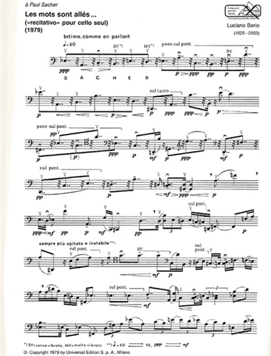 Berio, Luciano: Mots Sont Alles (Solo Cello)