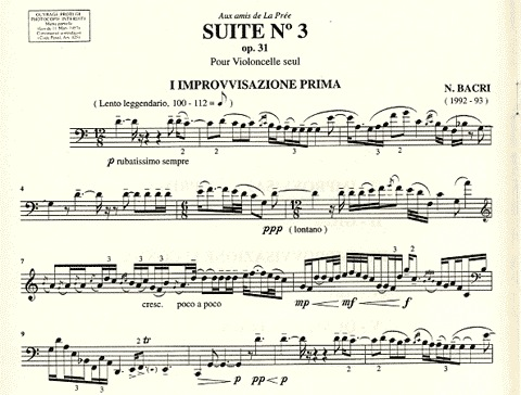 Bacri, Nicolas: Suite No.3 Op.31 (cello solo)