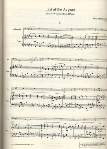Theodorakis, Mikis: East of the Aegean (cello & piano)