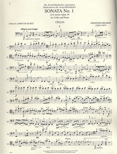 Brahms, Johannes (Kurtz): Sonata #1 in E minor, Op.38 (cello & piano)