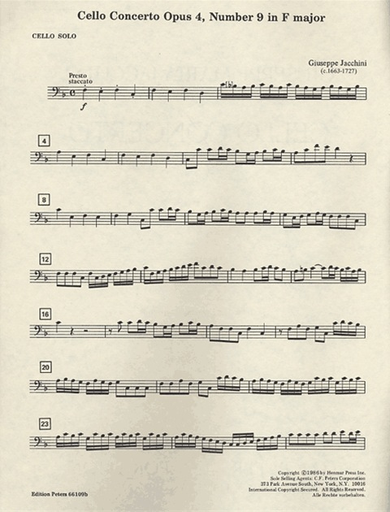 Jacchini, Giuseppe Maria: Cello Concerto Op.4 No.9 (cello & piano)