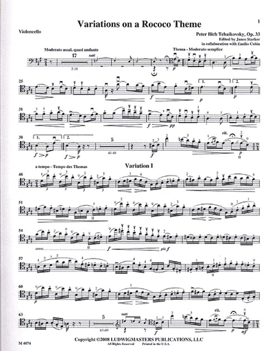 Tchaikovsky, P.I. (Starker): Variations on a Rococo Theme, Op.33 (cello, and piano)