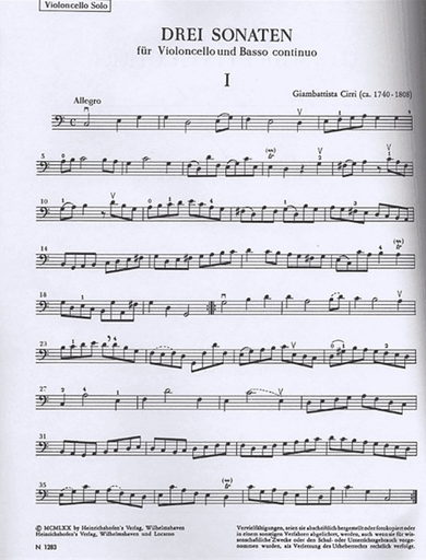Cirri, Giovanni: Three Sonatas (cello & piano)