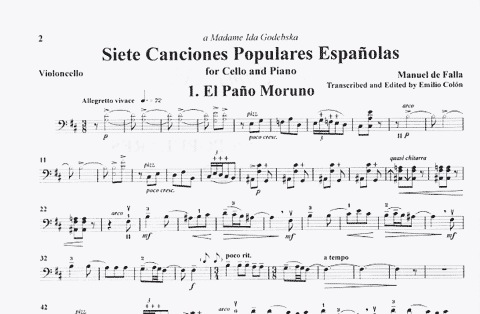 De Falla, Manuel: Seven Spanish Folksongs (cello & piano)
