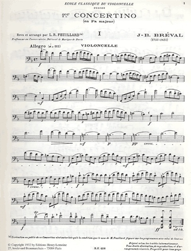 Breval (Feuillard): Concertino No.4 in C Major - REVISED (cello & piano) Edition Delrieu