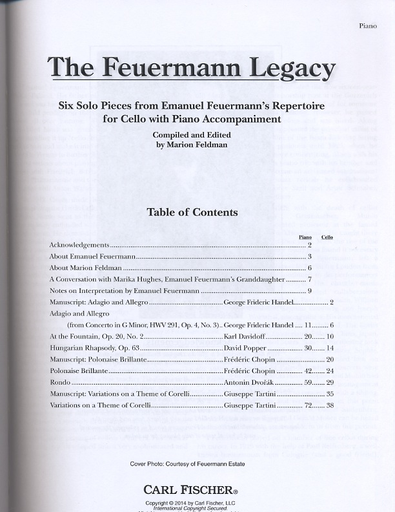 Feldman, Marion: The Feuermann Legacy-Six Solo Pieces from Emanuel Feuermann's Repertoire (cello & piano )