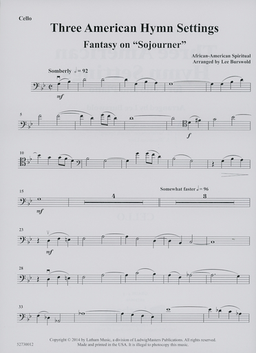 Burswold, Lee (arr): Three American Hymn Settings for cello and piano