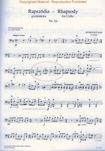 Petrovics, Emil: Rhapsody No. 2a (cello solo)