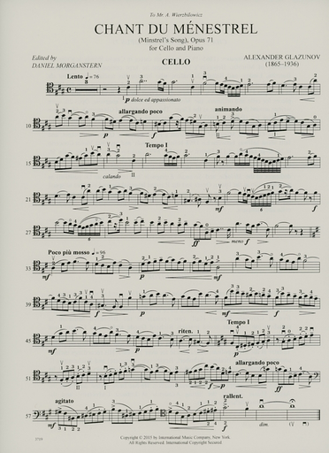 Glazunov, Alexander (Morganstern): Chant du Menestrel-Minstrel's Song Op. 71 (cello & piano)
