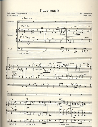 Hindemith, P. (Breuer, arr.): Trauermusik (cello and organ)