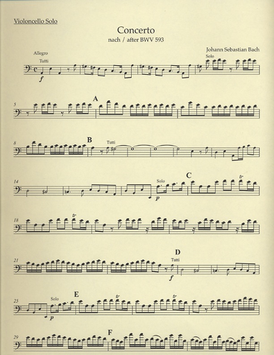 Bach, J.S.: Concerto in A minor for Cello, Strings & Basso Continuo, after BWV 593 (cello & piano) Barenreiter