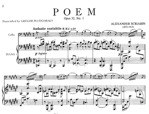 Scriabin, A. (Piatigorsky): Poem Op.32, No.1 (cello & piano)