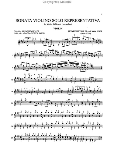 Biber: Sonata Violino Solo Representativa (violin, Cello & piano)