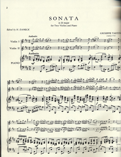 Tartini (Dameck): Sonata in D Major (2 violins & piano: cello ad.lib.)