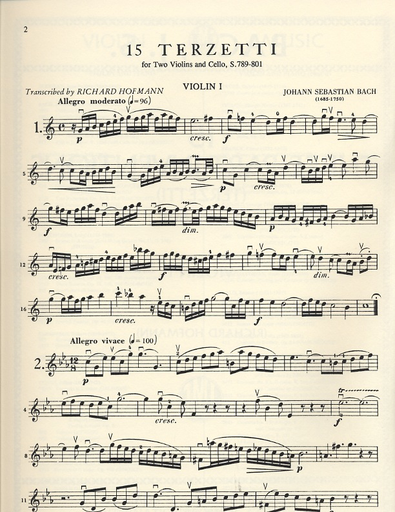 Bach, J.S.: 15 Three-Part Inventions-Terzetti (2 violins & cello)
