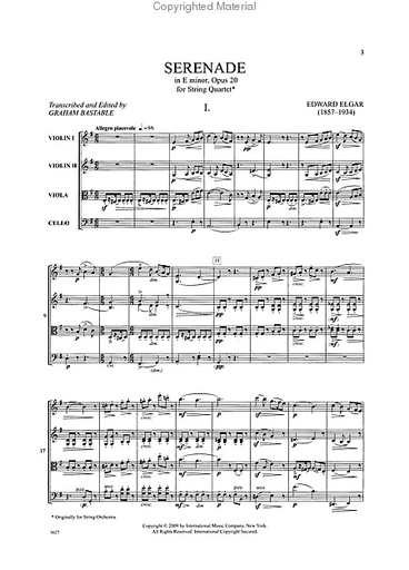 Elgar, Edward: Serenade in E minor, Op. 20 (string quartet) score and parts, International