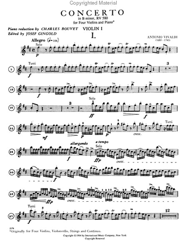 Vivaldi, Antonio: Concerto for 4 Violins in B minor F.I No. 10 (4 violins, piano) IMC