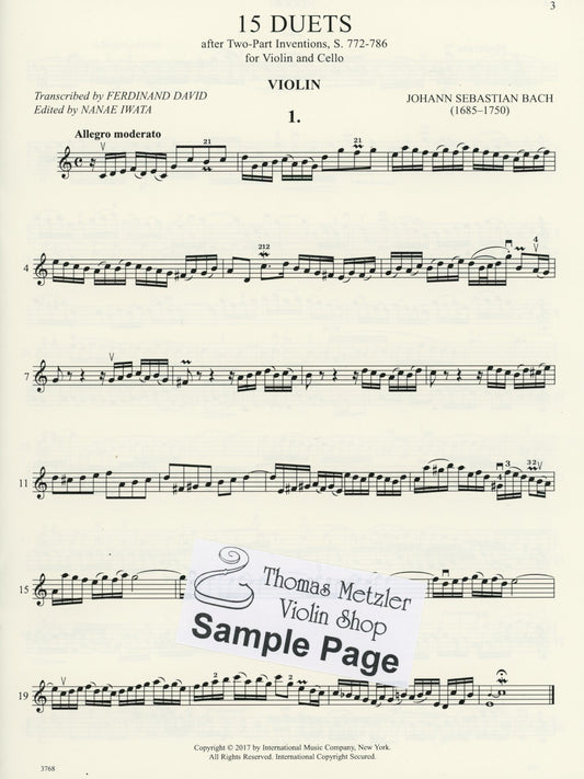 Bach, J.S. (David/Jee/Iwata): 15 Duets after Two-Part Inventions, S.772-786 - ARRANGED (violin & cello) International