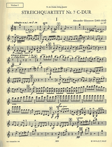 Glazunov, A.: String Quartet No. 7 in C, Op. 107 (set of parts)
