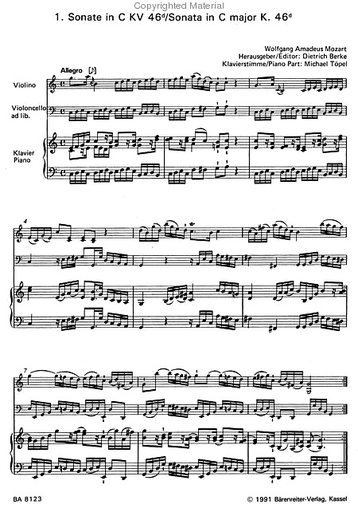 Mozart , W.A.: 2 Sonatas K46d & 46e (violin, cello, piano) Barenreiter