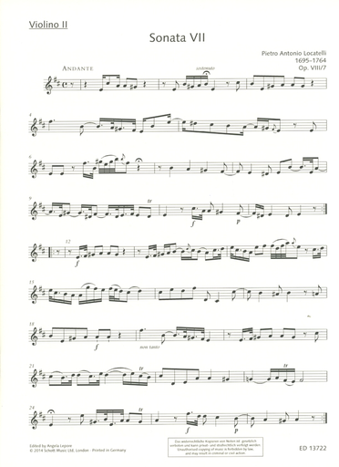 Locatelli, Pietro Antonio: Three Trio Sonatas for 2 Violins and Basso Continuo (2 violins keyboard, cello)