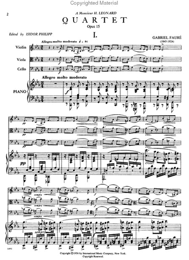 Faure: Quartet No 1 in C Minor; Op 15 (for piano, violin, viola, and cello) | Metzler Violins