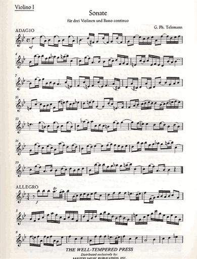 Telemann, G.F.: Sonata in Bb (3 violins, cello & piano)