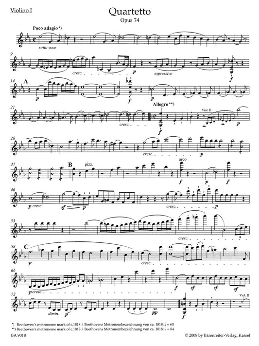 Beethoven (Del Mar): String Quartets, Op. 74 & 95 - URTEXT (string quartet) Barenreiter