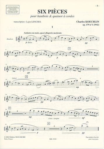 Koechlin, Charles: Six Pieces Op.179 (Oboe and String Quartet)