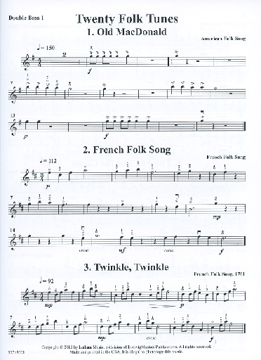 Montgomery, M. (arr.): 20 Folk Tunes for Bass Quartet or Trio (3-4 basses, and score)