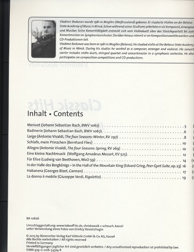 Bodunov, Vladimir: Classic Hits for Violin & Viola, Barenreiter