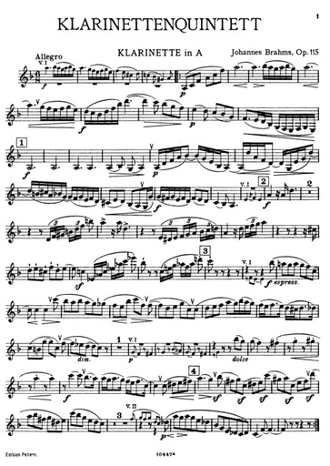 Brahms, Johannes: Clarinet Quintet Op. 115 in b minor (clarinet, 2 violins, viola, cello)