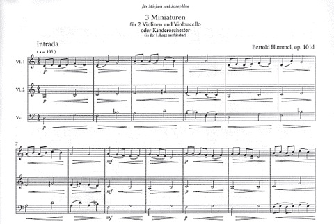 Hummel, Bertold: 3 Miniatures for (2 violins & cello) score & parts