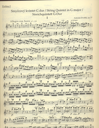Dvorak: String Quintet in G Major, Op.77 (2 violins, viola, cello, & bass) Barenreiter