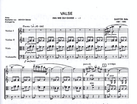 Bartok, Bela: Valse (Ma mie qui danse... from the 14 Bagatelles) Op.13 (string quartet)