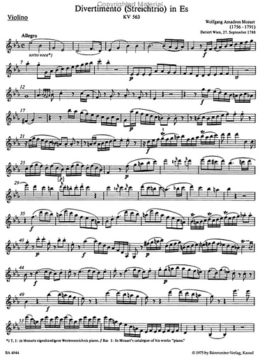 Mozart, W.A. (Berke): Divertimento in Eb Major K563 (violin, viola & cello) Barenreiter